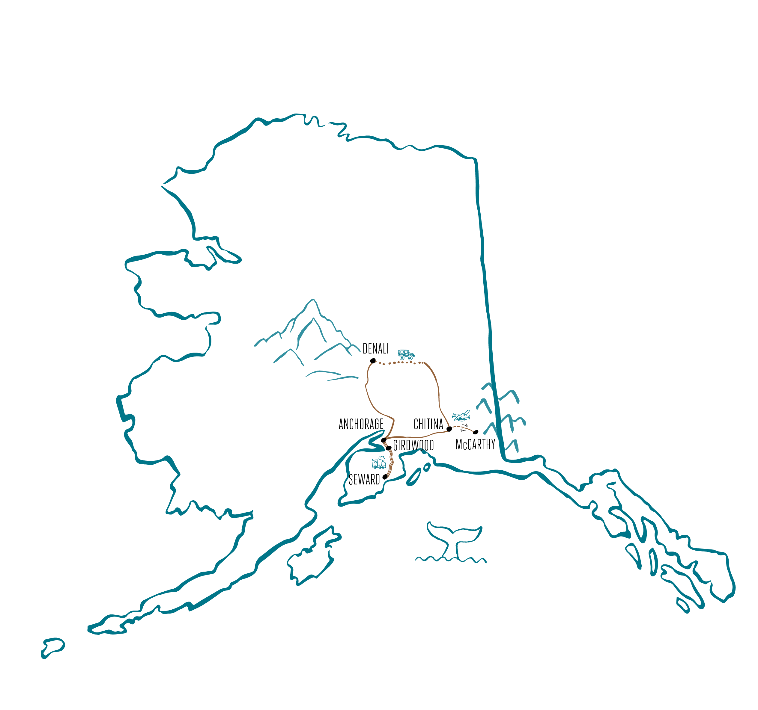 Maak tijdens deze reis kennis met de belangrijkste highlights van Alaska’s vasteland. Op een mooi tempo verken je achter het stuur van je eigen 4x4 de mooiste plaatsen binnen 'Alaska’s Inner Circle'. De uitstap naar McCarthy leg je daarbij af per bushplane. Daarna laat je de huurwagen achter en trek je per trein naar het Kenai Peninsula. In Seward kom je oog in oog te staan met de gletsjermassa van het Kenai National Park en in Girdwood eindig je jouw reis comfortabel met zicht op de Turnagain Arm.